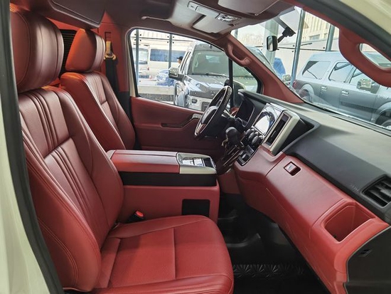车身彩色泊车辅助传感器、离子空气过滤器、全向雷达和冷藏箱,后排座椅可以折叠起来,左右两侧可以增加行李空间,Hiace包厢设计宽敞,中间过道将乘客座椅隔开,进出更方便,所有座椅均采用优质织物制成,并配有头枕,每个头枕和座椅靠背都可以调节到适当的高度,座椅结构更符合人体曲线,使旅途更加舒适,同时,还有安全扶手。