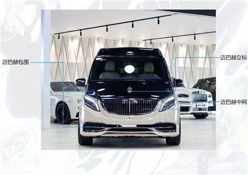 迈巴赫VS680商务车,迈巴赫VS680在外观外型上延续了国产新V级的设计理念,标志性的枪弹头式外观搭配直的车身线条,慎重大气不言而明。V系列以通体流光的深邃黑色时尚魅惑外形,承袭自奔驰豪华轿车的气质前脸,深邃修长的撩人双眸,搭配细节层次更显精致的下颚雾灯设计。车身尺寸:5370*1928*2080mm(长宽高),18寸漩涡造型轮毂添时尚气息,相比国内长轴距的版本视觉感更流畅,驻车也更具便利性。