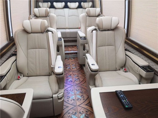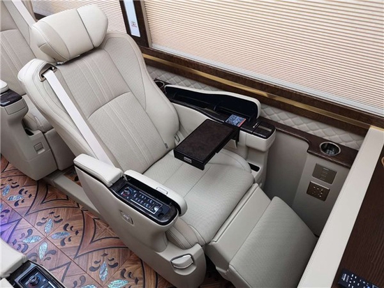 丰田考斯特改装内饰设计上有很多独特的想法,窗帘的设计可以和地毯的设计相互结合,豪华的布艺窗帘和端庄的阻燃式地毯相互结合打造出丰田考斯特改装商务车内饰独特的尊贵。而百褶窗帘和内饰的游艇木地毯相结合却可以显示出一种独特的大气之感。华通丰业丰田考斯特改装商务车增加车载冰箱,为我们的旅行提供更多的便捷,车内的灯光设计更可以营造出独特的气氛,航空顶灯,LED大灯以及座位处的灯光的谁都可以根据我们自己的需要进行设计。
