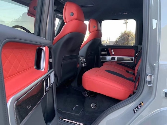 21款奔驰G63 (配置|询价)(配置|询价) 22寸AMG熏黑轮毂 碳纤维内饰 AMG专业性能碳纤维方向盘 皮革方向盘把手 AMG红色卡钳 Burmester环绕声系统,方向盘加热