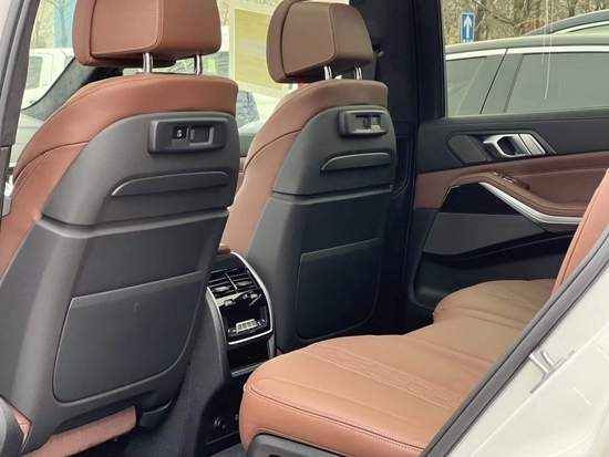 22款宝马X7 (配置|询价)内饰部分,宝马X7采用最新家族式设计语言,使用大量真皮、木纹饰板进行包裹。配备12.3英寸带有注意力检测的全液晶仪表和12.3英寸悬浮式触控显示屏。空调出风口与温度显示屏、实体功能按键结合在同一区域,并使用银色装饰条进行点缀。下方盖板下方为带有加热、制冷功能的杯架,全新的水晶电子挡杆造型十分精致,进一步提升了车内的豪华氛围。