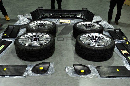 22寸多辐拉丝锻造轮毂带悬浮标,加宽的定制轮毂填入加宽的轮眉,协调的设计感令揽胜外观看起来更加丰富饱满,MANSORY动感狂野的定制风格从轮毂便可探知一二。