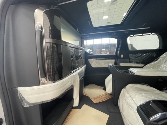 2022款雷克萨斯LM350后视镜位于车门上方的设计,留出大块A柱三角窗,配合较长的A柱和短促的车头设计,对于改善车内前排视野起到很好的帮助;后视镜集成了LED转向灯带和车侧摄像头,支持电动调节、加热、折叠、记忆、倒车自动下翻等丰富功能。前后车窗均采用了多层隔音玻璃,后排侧窗还加入了MPV车型上常见的深色隐私玻璃;前排车门配备了无钥匙进入,后排则为双侧电滑门,车内有无钥匙启动系统,车身底部的一周的镀铬包边,给细节处增添了一些质感。