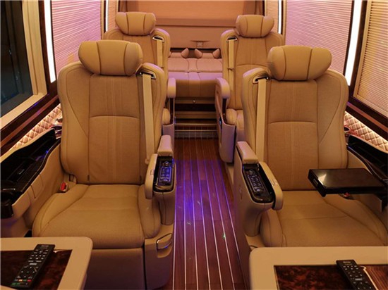 丰田考斯特改装商务车,内饰的设计上,巧妙地色彩搭配可以提升一种温馨的氛围,不会使丰田考斯特的内饰装置显得过于呆板。丰田考斯特改装商务车在灯光的设计上更是展现出了色彩的绚丽。A380航空彩色顶灯,不同的色彩设计展现出不同的氛围。阅读灯的安装为我们的阅读或者办公提供方便。通道地毯两侧的压条以及蓝色灯光的点缀,考斯特改装商务车的内饰环境因缤纷的色彩更加尊贵。
