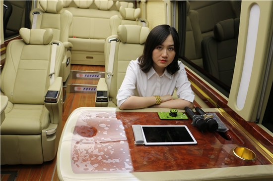 丰田考斯特改装内饰既然已经有了舒适且豪华的真皮座椅,那一张豪华有档次的办公桌自然也是必不可少。丰田考斯特改装可以安装桃木装饰的豪华办公桌,以及舒适的秘书席设计,为了办公的方便我们同样可以在车内安装文件柜,把丰田考斯特改装成我们最喜欢的移动办公室的模样。为了方便办公,我们同样还可以车内的灯光设计进行一些独特的设计。