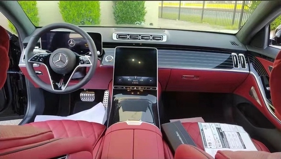 2022款奔驰S580的内饰走的是科技路线,新车采用了三幅式的全新造型的方向盘,新车的中控台上采用了钢琴烤漆面板装饰,上面采用了多条横向的白色装饰条点缀。采用了悬浮式的纵置大屏,液晶仪表采用了悬浮式的风格。