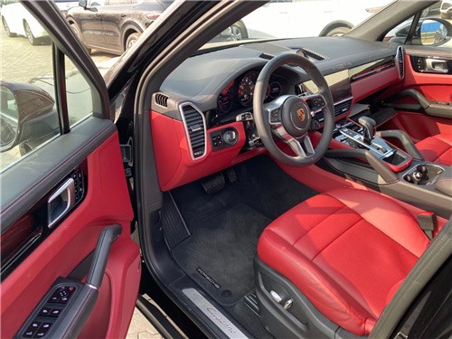 2021款加版凯宴2.9TS 黑/红 金属漆、红色高级真皮座椅、豪华增强包(全景、前排座椅通风、前后座椅加热、四区空调、速敏、氛围灯、智能卡、并道辅助、LED矩阵大灯、BOSE音响)、18向座椅调节、21寸RS轮、黑色行李架、环影、电吸、豪华档把、拖钩、运动前裙板、黑色车窗饰条