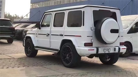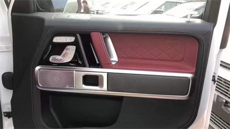 G Manufaktur 月光磨砂白,G Manufaktur全红菱形格内饰,G Manufaktu限量版(AMG碳纤维引擎盖,后视镜黑色,黑色星标,中网熏黑,外观黑色套件,22寸磨砂黑轮毂,黑色外观字样,磨砂黑备胎圈),碳纤维内饰。