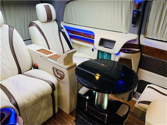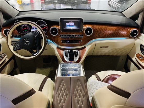 奔驰V260L改装方案有很多种(大致分三种风格:1商务办公接待;2私人娱乐;3私人豪华房车,这三种风格又可以互相叠加、互相交错,最简单的商务风格都很多改装项目:地毯、木地板、真皮座椅、窗帘、大屏显示器、车顶/车侧蒙皮、九宫格顶灯、冰箱、办公桌、等等。智能化特点:航空座椅的调节(靠背、腰托、腿托、脚托、360°旋转、按摩、加热)由触摸屏控制,只为您的舒适和便捷。后排娱乐、办公桌、大屏显示器、放倒试沙发床,由此您可想象奔驰V260L的舒适度、便捷度和豪华程度,也给您在旅途中提供了更多乐趣。