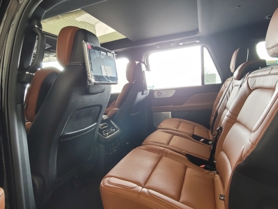21款林肯领航员座椅方面,利用人体工程学设计的真皮座椅的支撑性良好,前排座椅都有加热通风和电动腰撑功能,乘坐舒适度有了明显提高。用户不用担心这个大块头的内部空间,它的后两排座椅能够随意折叠,完全放平后,内部空间超大。第三排腿部空间拓展性相对而言略差一些,主要是第二排不能前后移动,不过日常乘坐还是没什么太大问题的。