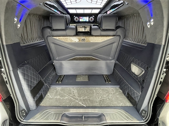 驾驶室整体换装也是比较大的,升级了奔驰V级的悬浮式中控,迈巴赫涡轮出风口,具有非常高的豪华感,这款车主副驾驶座椅升级多项电动调节与加热功能,可任意调控的温度的车载冰箱,真皮包覆的中控台与奔驰钟表,彰显了这款奔驰威霆的独特设计与尊贵感。