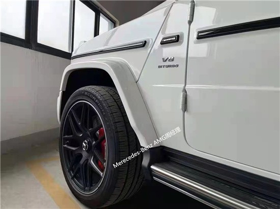 22款奔驰AMG G63白色现车它硬朗的方盒子造型,没有多余的弧度、没有任何曲线,眼光所及满是锋利的线条,就连车顶上的导雨沟槽,也是沿着车顶周围一圈,分外焊接上去的金属槽,车门搭钮更是绝不虚 心,硬挺挺 地屹立在 门缝之外,外凸 的轮拱、造 型如同 梯形的引擎盖。