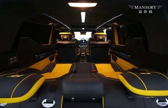 迈莎锐MV600.誉金是MANSORY专门针对国内高端商务人士研发的豪华七座MPV,比起:埃尔法 (配置|询价)、LM等“严进严出”的日系短轴商务车,MV600:5400X1928X1920(mm)的夯实尺寸以及3.4米超长轴距暗示了它内部空间充满可塑性,为打造“陆地头等舱”埋下了伏笔;特别加装的不锈钢行李架让迈莎锐MV600誉金散发出与高顶商务车不分轩轾的庄肃霸气!
