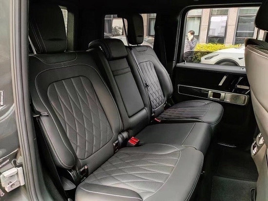 2022款新款奔驰G550无论经历如何包装,选用各种高级材料重塑车厢,但从刻板的内饰面貌上只能传递出工具车的印记,如今进入全新奔驰G550的车厢后,能够看到最新奔驰家族化内饰设计,眼前的景象完全看齐自家SUV旗舰,车厢内除了经典的实木饰板外,还应用了金属、碳纤维和皮革等高级材质。