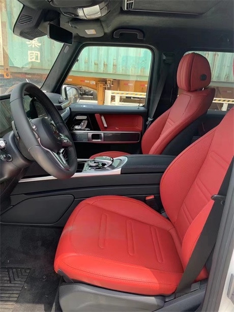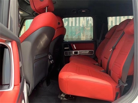 21款奔驰G550 美规(现车)配置:白车红内,豪华内饰包、加热Napa真皮方向盘,舒适座椅包、通风、加热、运动阻尼,四季脚垫、车身同色备胎罩239万。