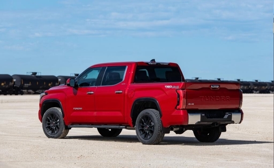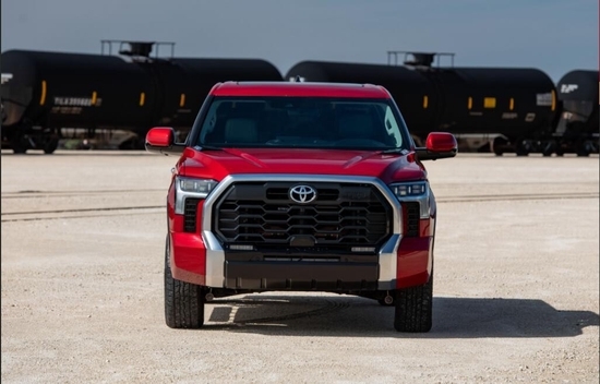 全新丰田坦途首先在外观部分,新车采用了全新的设计风格,最具辨识度的莫过于前脸这块非常大的进气中网设计,通过亚光银的饰条搭配黑色蜂窝网状的造型使得视觉上整个中网的面积似乎从车标一直拉通到前保险杠的位置上,第一感觉无疑是非常野性的。