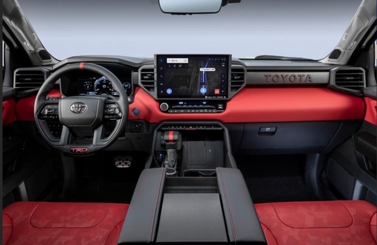 以往丰田皮卡车系列内饰设计确实没什么看点,就像丰田普拉多一样,主要以实用为主。但是现在时代变了,年轻消费群体越来越追求科技配置,丰田设计师团队也不得不做出一些改变,这次全新丰田坦途皮卡车内饰科技氛围已经相当强烈了,不仅有全液晶仪表盘加持,而且提供了超大面积悬浮导航屏幕,视觉效果甚至能够媲美特斯拉,TRD高性能版本更是提供了丰富的内饰装饰,比如红色真皮面料座椅,搭配有专属刺绣装饰。
