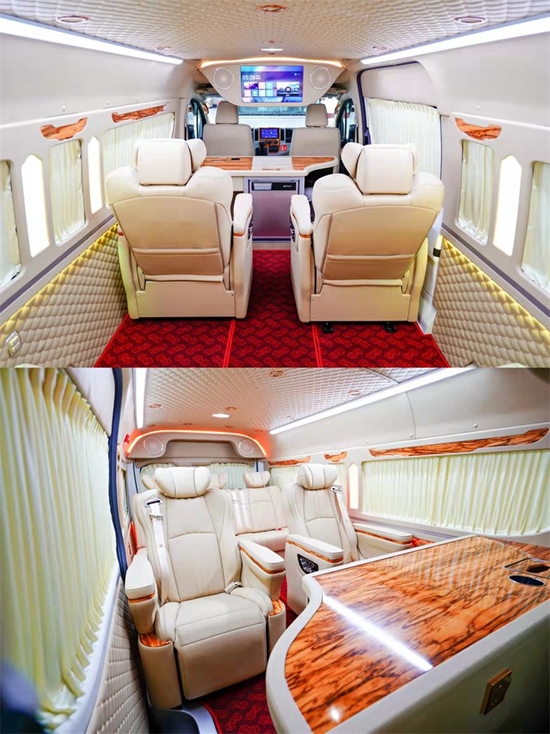 丰田海狮内饰的改装上,还有许多不同的细节的设计。对于旅行来说,乘车过程中难免会有许多烦闷之时,所以乘车过程中的娱乐活动可以帮助我们很好的打发时间,有一个愉悦的体验。丰田海狮改装商务车,内饰音响以及影音系统,超清的显示屏,这些设备的存在,我们真可以在旅途中享受动听的音乐,观赏电影或者跟自己的同伴来一场K歌的比拼。内饰设计上的贴心完美,外观装饰上的端庄大方,丰田海狮改装满足我们心中想要的模样。