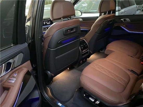 2021款全新宝马X7 (配置|询价)采用了全新的设计语言,对于宝马经典的双肾进气格栅,在面积上扩大了很多,几乎占据了X7的整个车头,看起来十分霸气,而且X7对前脸大灯组还进行了升级,车头大灯采用的是矩阵式激光大灯,无论是视觉上还是照明度上都得到了很大的提升,因为是7座车,X7的车身侧面看起来非常长而且厚重,有些类似于路虎的设计风格,大量的平直线条装饰着X7的车身,让这款车的霸气程度提升了很多。