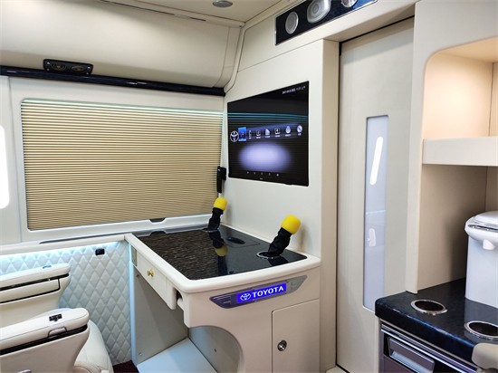 丰田考斯特改装商务车在改装的不同之处就是他是一个可以根据你自己的心意去改变的装置,你可以哦根据自己的需要去选择座椅的数量,选择是采用普通的织物座椅,还是选择豪华的真皮座椅。同样还可以安装沙发折叠床,打造属于我们自己的商务车,不管经历怎样的改变,都是在朝着所喜爱的方向发生变化,这也就是温顺的舒适感。在其他的一些装饰的改装上,例如窗帘地毯,都可以根据自己的需求选择。窗帘的选择上丰田考斯特可以选择豪华的布艺窗帘,也可以选择舒适的百叶窗帘,百叶窗帘可以选择是手动的还是自动的,加装窗帘装饰框等等,都可以根据自己的需要进行选择。在丰田考斯特地毯的选择上,可以选择通道地毯,或者全车都加装木质地板,这也是我们根据自己的风格进行选择。