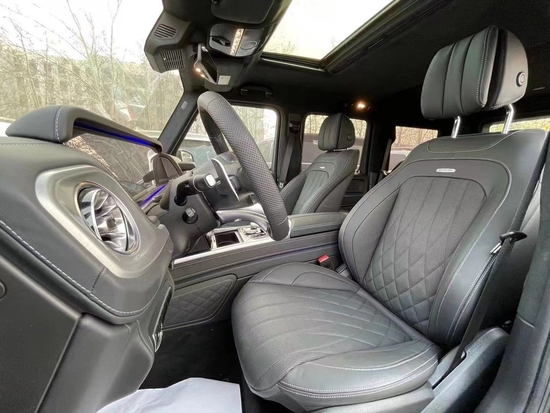 配置:21款奔驰G (配置|询价)63 4.0升V8AMG发动机,588匹马力,AMG变速TCT 9速变速箱,前座椅记忆,前排座椅加热,滑动玻璃天窗,三区气候控制,空气净化,电热挡风玻璃,加热方向盘,AMGNappa真皮性能方向盘,Burmester环绕声系统,苹CarPlay,64色LED环境照明,自动启动/停止,AMG性能排气系统,AMG高性能制动系统,红色的刹车卡钳,AMG控制自适应阻尼架,主动车道保持辅助,盲点辅助,主动刹车辅助,交通标志辅助,主动停车辅助,360度环影,主动多光束LED照明系统,LED日间运行灯。订车微信:18649226789 阿亮(同微信)