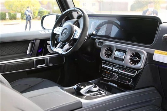 21款奔驰G63豪华精致的真皮包覆提供了足够的舒适性和支撑性,通风和加热功能让乘客免受高温和寒冷的煎熬。中控台多处均采用碳纤维材料覆盖,带彩色TFT显示屏的AMG仪表盘、AMG主菜单和单独的挡位显示器以及采用白色照明的AMG门槛。