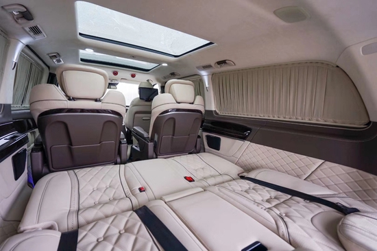 内饰方面,奔驰V260鲨鱼T版的布局设计与普通版车型基本保持一致,但黑白相间的配色,以及碳纤维多功能方向盘和大量碳纤维面饰板的搭配,使其运动氛围十足,给人的奔驰AMG才有的驾驶感觉。