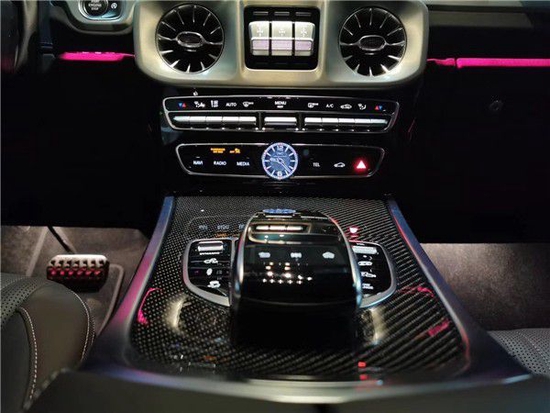 21款全新G550内饰方面,新G550保留了新G500的整体设计,除配色差异外,新车还换装了全新造型的平底式AMG运动方向盘,其两侧配以打孔皮质包裹,下部镀铬装饰的造型也与新G500明显不同,看上去十分战斗。