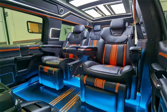 福特勇猛者有着美式车的狂野和粗犷,外观有着福特旗下越野车的霸气,福特勇猛者整体车架由高强度钢冲压构成,很大程度的提升了车身的耐用性和乘客的安全性。升级后的福特勇猛者底盘及发动机参数并未改动,搭载3.5TT发动机,功率达到280KW六缸国六环保标准,改装后的福特勇猛者核载7人,长*宽*高(mm):5907mm*2083mm*2160mm前置四驱,VX:YH_ZF-2020——1 3 3 2 1 9 5 6 6 7 9其轴距达到了3685mm所以福特勇猛者的内部空间和动力还是很充足的。