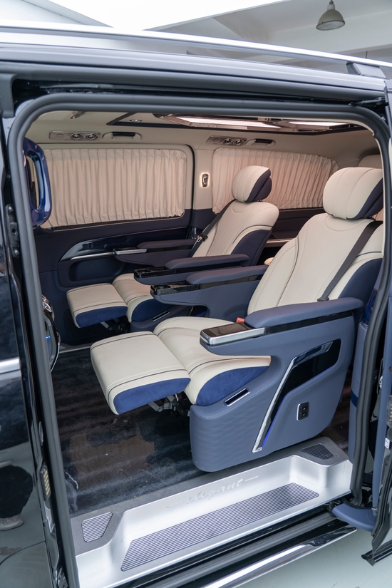这款奔驰威霆7座商务车的车窗还特意设计隐私窗帘,给老板一个更安全私密的环境,后备厢空间也格外宽敞。