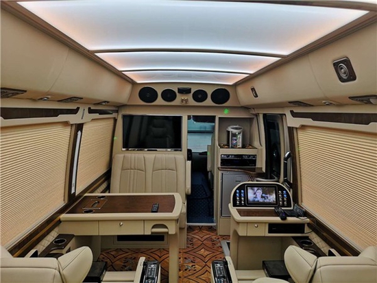 丰田考斯特10座在内饰的设计上可以采用个人定制的窗帘,百褶窗帘,或者是简单大方的布艺窗帘,华通丰业丰田考斯特改装商务车这种独特的设计是他们能够在商务车的市场上有着自己的一席之地。丰田考斯特10座内饰的地摊上也可以选择阻燃式地毯或者是大气十足的游艇木地毯。