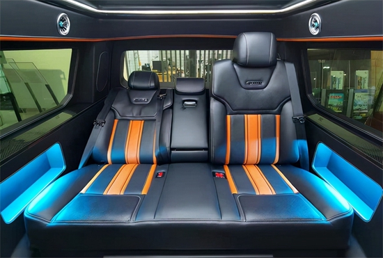 福特勇猛者是改造后的,原本只是承载货物的空间变成独立排布带电动加热按摩功用的第二排老板座椅和超大空间带顶灯独立空调出风口的第三排沙发。难得的是第三排座椅还能前后移动放倒!当不需求乘坐7人的时分,放下第三排即可恢复皮卡本身超大载货的空间优势。后排由于非承载式车身的关系会比前一二排略高,但得益于勇猛者的后车窗和全景天窗,并不显得局促,反而让乘坐于第三排的乘客会有种居高临下的觉得。
