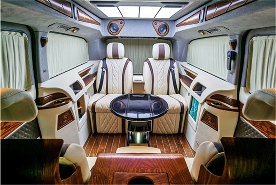奔驰V260L改装方案有很多种(大致分三种风格:1商务办公接待;2私人娱乐;3私人豪华房车,这三种风格又可以互相叠加、互相交错,最简单的商务风格都很多改装项目:地毯、木地板、真皮座椅、窗帘、大屏显示器、车顶/车侧蒙皮、九宫格顶灯、冰箱、办公桌、等等。智能化特点:航空座椅的调节(靠背、腰托、腿托、脚托、360°旋转、按摩、加热)由触摸屏控制,只为您的舒适和便捷。后排娱乐、办公桌、大屏显示器、放倒试沙发床,由此您可想象奔驰V260L的舒适度、便捷度和豪华程度,也给您在旅途中提供了更多乐趣。
