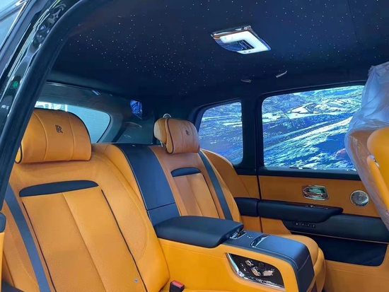 劳斯莱斯库里南后排3座及2座独立座椅设计,沙发一般的座椅采用真皮包裹,配合更加松软的头枕,让劳斯莱斯的奢华体验更加丰满。其中,四座版车型采用了大尺寸的中央独立扶手,并可根据需求进行定制,例如增加冰酒柜、后排桌板、娱乐设施。