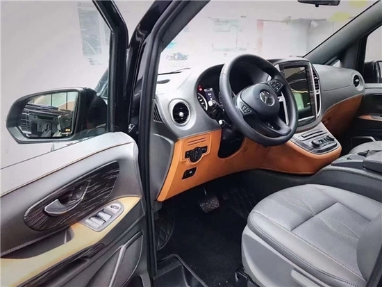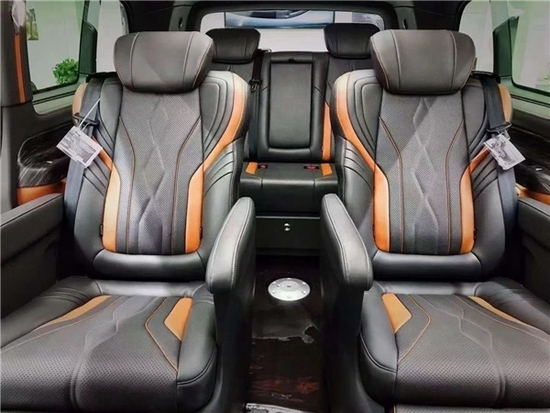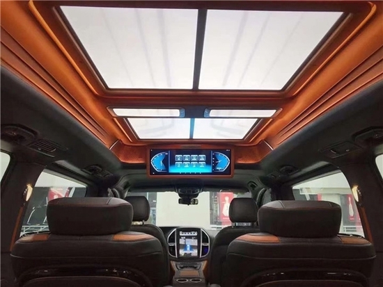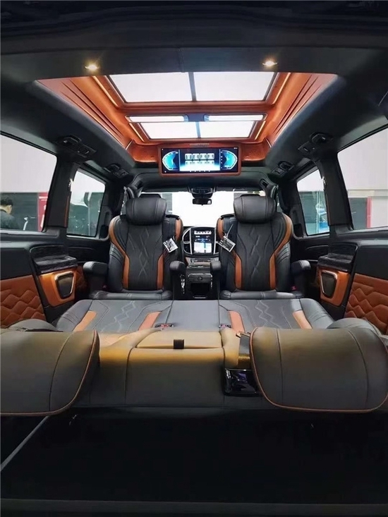 室内装饰方面,新款威霆改装商用车,选择皮革,复合海绵座垫,超细纤维皮革,高密度碳纤材料以及其他装饰材料来升级驾驶舱。在威霆的乘客舱皮革覆盖了汽车的墙壁,超细纤维皮革+麂皮屋顶,高光镜面亚克力迈巴赫地板和多功能皮革座椅。从视觉到触觉,整个乘车环境和体验都非常舒适和精致。