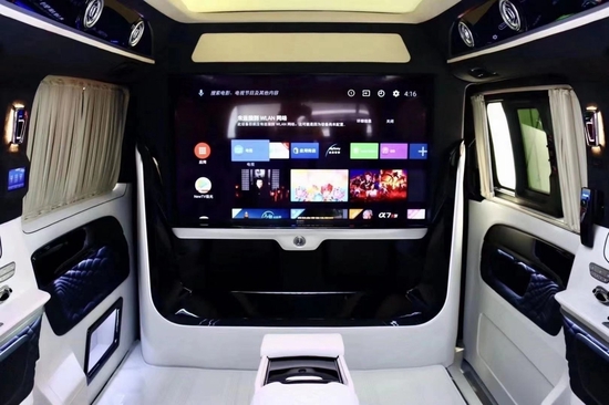 奔驰V250商务房车到达豪华的极致,那肯定属隔断版房车了。归功于隐私工作的到位,静谧的星空下打开奔驰V250房车可能会颠覆当下的环境,五彩的星空顶或是清新雅致的灯带,搭配多种氛围灯,整个车厢熠熠生辉,DVD播放机里的影碟通过隔断板上55寸 液晶电视播放着电影,高保真音响为您模拟影片氛围,这是一场随时随地的视听盛宴。
