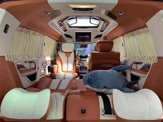 再者看一下内饰,埃尔法7座,中间两排航空座椅,舒适度满满的,三排正常的座椅可以倒挂,对于乘坐人数较少的车主来讲,埃尔法也是够用的。奔驰改款7座,中排两个航空座椅,舒适度和埃尔法座椅几乎一样,三排是沙发床,可以日常平躺休息,对于乘坐人数较多,对舒适度又有要求的车主来讲,奔驰比较适合。