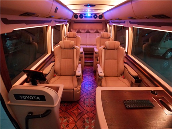 丰田考斯特加装商务车改装前后之后判若云端的设计更加体现在内饰灯光的设计上。丰田考斯特改装商务车原车出厂之时内饰颜色单一,宽敞的内饰空间也需要更加高端的照明。华通丰业丰田考斯特改装商务车,对于照明的设计上,我们可以选在车顶安装LED大灯,满足我们照明的需要。同样也可以安装彩色航空顶灯,营造车内不同的氛围,也是的丰田考斯特在内饰的环境上展现出与众不同的色彩。