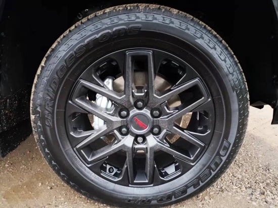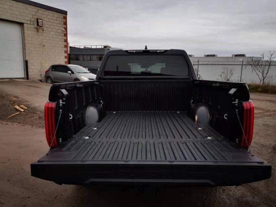 车身侧面部分,由于新一代坦途的定位并非是完全主打载货属性的产品。因此,它相较于一般货用皮卡,后斗会略微短一些;但这并不影响其显露修长的侧颜造型。并且,轮廓清晰的腰线,也能充分彰显其硬派皮卡的身份。