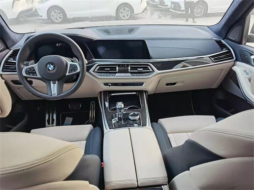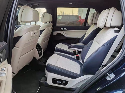 宝马X7车内彰显出强健的气魄和全面的道路适用性。真皮的多功能方向盘手感极佳,宽大的中控台简洁流畅,多功能电动驾驶座椅舒适性十足,整车采光效果十分出色。精准的操控、人性化科技配置以及自身品优势都是新一代宝马X7有力的武器。