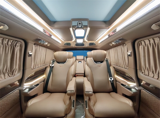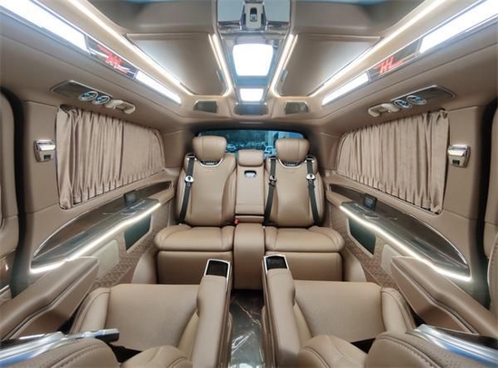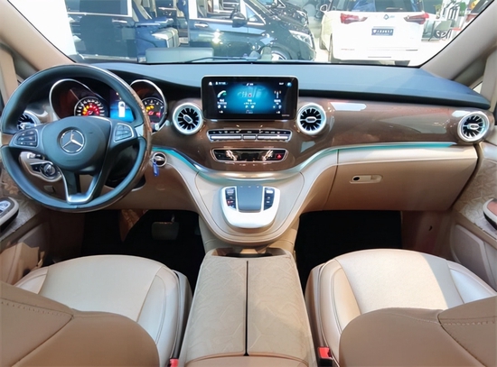 内饰采用的是棕色,一眼看上去富贵感以及豪华度,就体现在眼前,对于奔驰改装商务车来讲,其实在颜色的搭配以及设计的造型,不同的款式所展现出来的效果也完全不同。