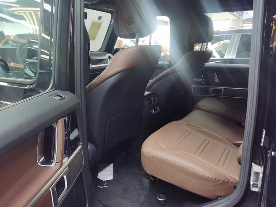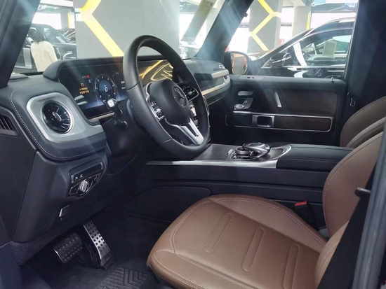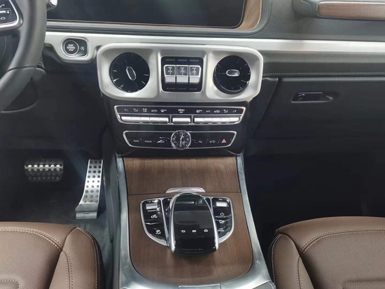 21款奔驰G350D内饰方面豪华气息浓厚,仪表盘采用双炮筒式设计,再配合中间的液晶显示屏,粗犷之中又不失精致,宽广的空间, 让人瞬间有一种自由奔放的感觉, 大量的真皮设计以及一些恰到好处的点缀材质,尽显高贵奢华。中控仪表的设计又很有科技感。