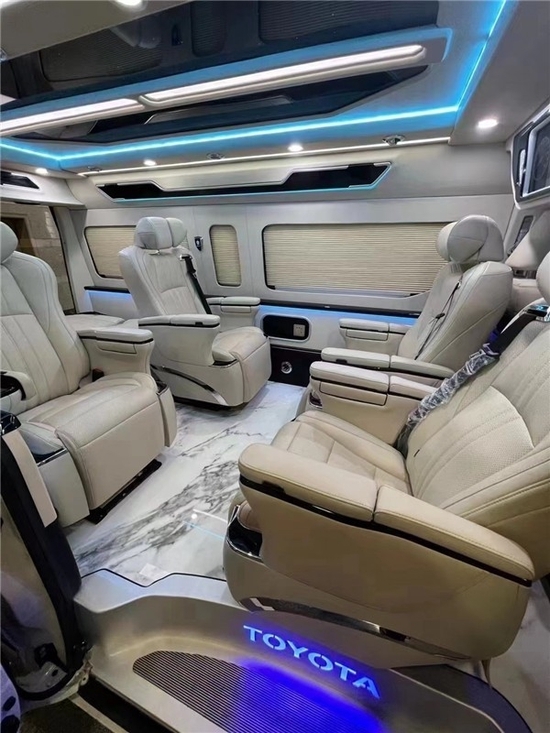 丰田海狮是一款充满灵动之气,带有稳重之态的全进口豪华商务车,在国外收到了中东以及欧美国家的广泛青睐,在设计上丰田海狮之注重简约铬防蹭之上平行增加彩色腰线,色彩的搭配尽显贵族风范。在车轮处增加装饰轮罩,既能保护车轮确保行驶安全又可以增加车的美观,更显高贵之态。在车头的改装设计上,色调不再单一,镀铬前格栅再加上醒目的镀金丰田标志,更体现出车头设置的精细美观。大灯以及雾灯均才有镀铬技术,增加车身的美观。
