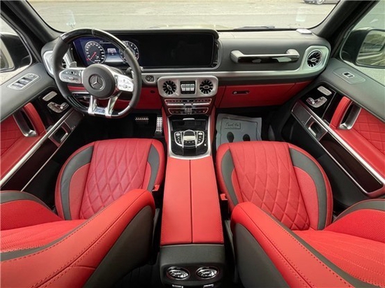 21款奔驰G63档次、质感和科技配置都明显提升全新奔驰G级的内饰相比老款有了明显的提升,采用了奔驰最新的双屏幕式设计,全液晶仪表盘和中控台屏幕都达到12.3英寸,同时内饰质感和工艺都有了很大的进步。中控涡扇式空调出风口也颇具设计感,车内的高档皮革内饰以及标有V12钻石图案设计的座椅、车门面板和脚垫,无不彰显着车主的尊贵身份。