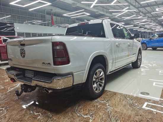 新款道奇公羊皮卡外观上刚劲有力表现出皮卡车所具备的硬朗风范,凶悍的进气格栅中央点缀着道奇公羊经典的车标,这是一张熟悉的前脸。前脸设计一直走激进路线。车头使用了小幅前倾的俯冲式设计思路,意在突显霸气和威猛。