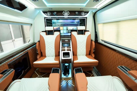 2022款进口丰田海狮改装商务车整车进行了多层隔音,降噪,止震,保温,防火等处理,进一步提升了整车的安全性,舒适性。整车音箱加了DSP功放,视听效果十分出色。定制改装好的丰田海狮的价格目前从70到90多万不等;根据需要也可以做成9座和13座车型,带隔断或者通舱都可以,外观也有多种包围可选。相对国内中规版车型,新款海狮中东版性价比极为突出,针对普遍关心保养维修及上牌问题,目前了解到,平行进口车海狮中东版已经可以实现全国联保享受三包政策且无区域限制。