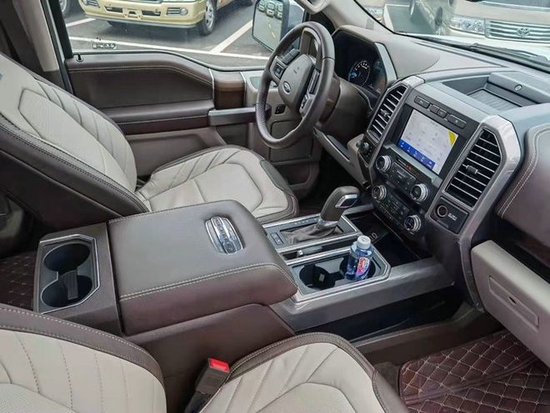 进口平行车福特F150勇猛者SUV 3.5T 为了更好地迎合车系的粗犷与硬实,总体的车内饰大概是维持初始设计风格不会改变,坐进车你可能感受到它心里美国式的野性与张扬,坐椅选用规范与众不同的皮革制品装饰设计,这种坐椅另外具有记忆力作用。