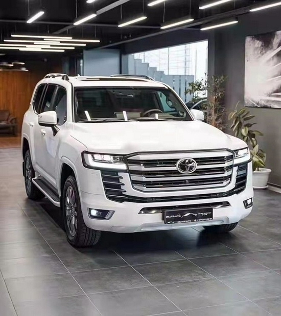 2022款丰田酷路泽LC300新车延续硬派设计风格的同时也加入了时尚元素,前脸依旧是方方正正的矩形造型,中间是粗壮的三幅饰条,搭配两侧同为矩形的LED头灯,以及底部的贯穿式进气口,和现款车型保持了一样威猛有力的视觉效果。