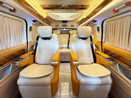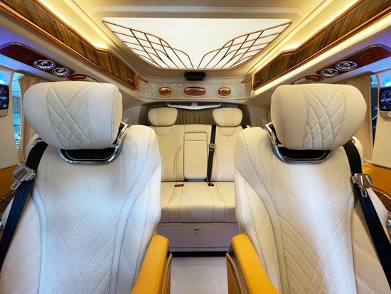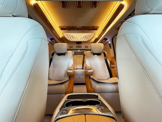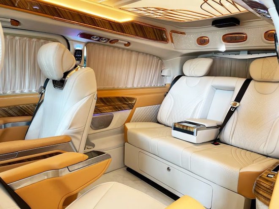 奔驰威霆内部空间之大是任何MPV都无法做到,宽敞的空间造就音响升级和内饰改装的基础,当工作累了,就在车里休息,喝喝酒听听音乐,实乃人生一大乐事。在奔驰威霆后舱的两个独立航空座椅,加热通风按摩功能齐全,最大限度的减缓您的乘车疲惫。八向电动调节:电动头枕,电动腿托,前后电动调节,电动靠背调节,此外增加肩部支撑功能调节方便操控简单,外出旅行更加舒适和享受,不在担忧坐“长途车”腰酸背痛的困扰。白色百褶窗帘都透露着华贵感。奔驰威霆地板是豪华进口高光镜面迈巴赫亚克力地板,看上去清爽踏上去舒适;顶部绚丽的巴赫同款顶灯加上双侧顶灯显得相得益彰,车顶设计上也富有层次感,灯光采用碎钻搭配,使整车内部空间氛围温馨且大气,而且在造型上也是亮点突出。18寸小隔断电视,下方小吧台带触控屏灯光的一键控制,非常便捷,独立的办公桌板更好的为您提供办公用途。