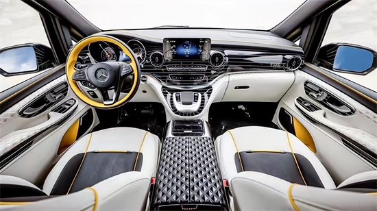 前脸采用超大开口的直瀑式中网,大面积的镀铬装饰,中网之中还有抽象的奔驰星徽更加的别致;艺术造型的下示廓灯,有效地给对向车辆提供准确的信号,还更加的美观。气场盖过丰田埃尔法和雷克萨斯LM300。鹰眼式的LED大灯目露霸气,智能调节水平高低,自动根据环境明亮开启,保障你的夜间出行。配备了S级才配备的空气悬挂,双五辐的旋风轮毂更加轻盈与众不同,舒适度堪比奔驰S级。